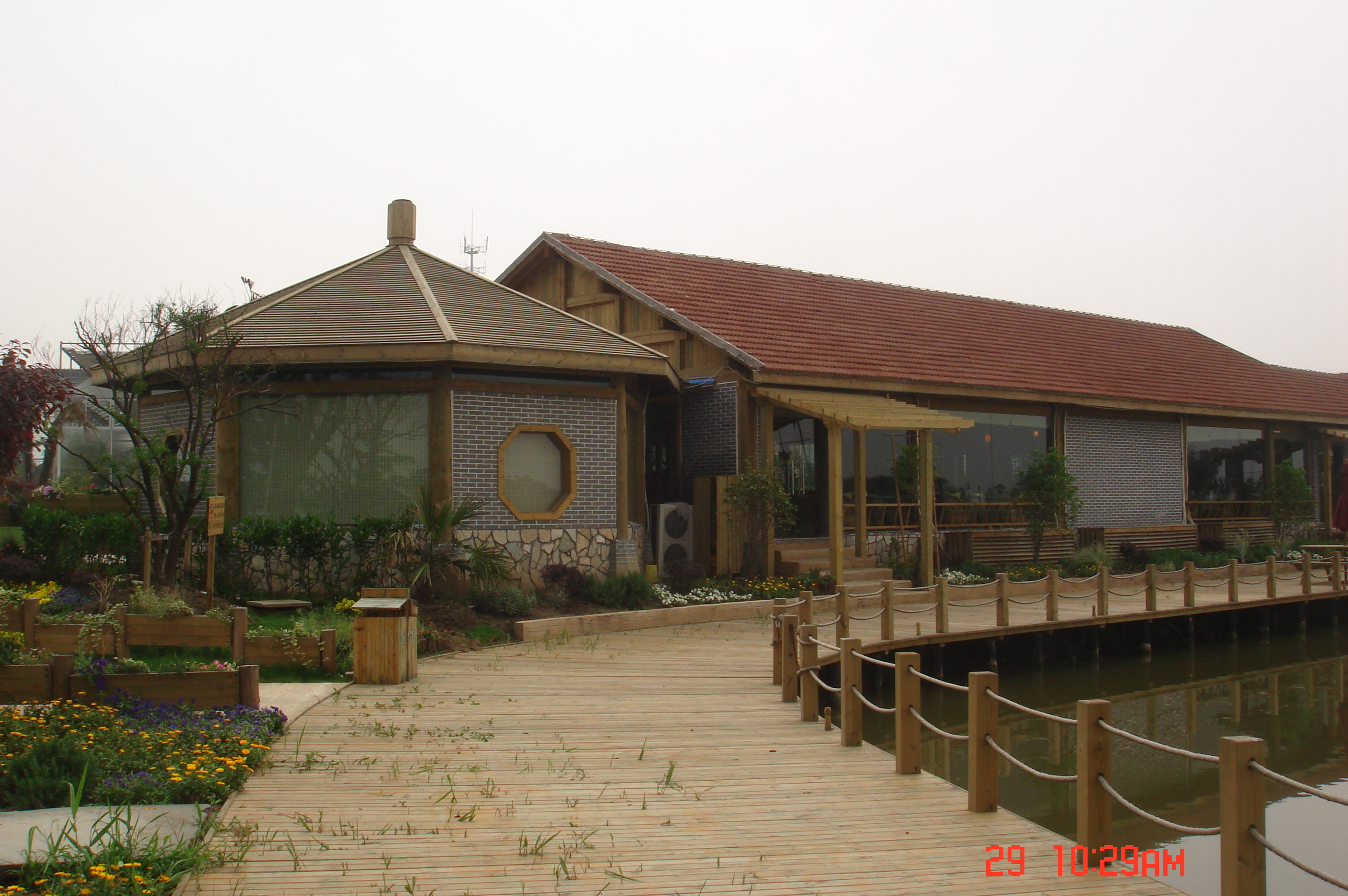 農(nóng)場(chǎng)內(nèi)咖啡廳、弧形廊架、景觀木橋、休閑小品,均為我公司設(shè)計(jì)并安裝施工,是一所以休閑娛樂(lè)為一體的綜合型的度假